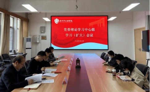 3月14日,新材料工程学院党委理论学习中心组学习(扩大)会议召开。会议由学院党委书记郝涛主持,学院党委理论学习中心组成员、党支部书记、青年教师代表参加。