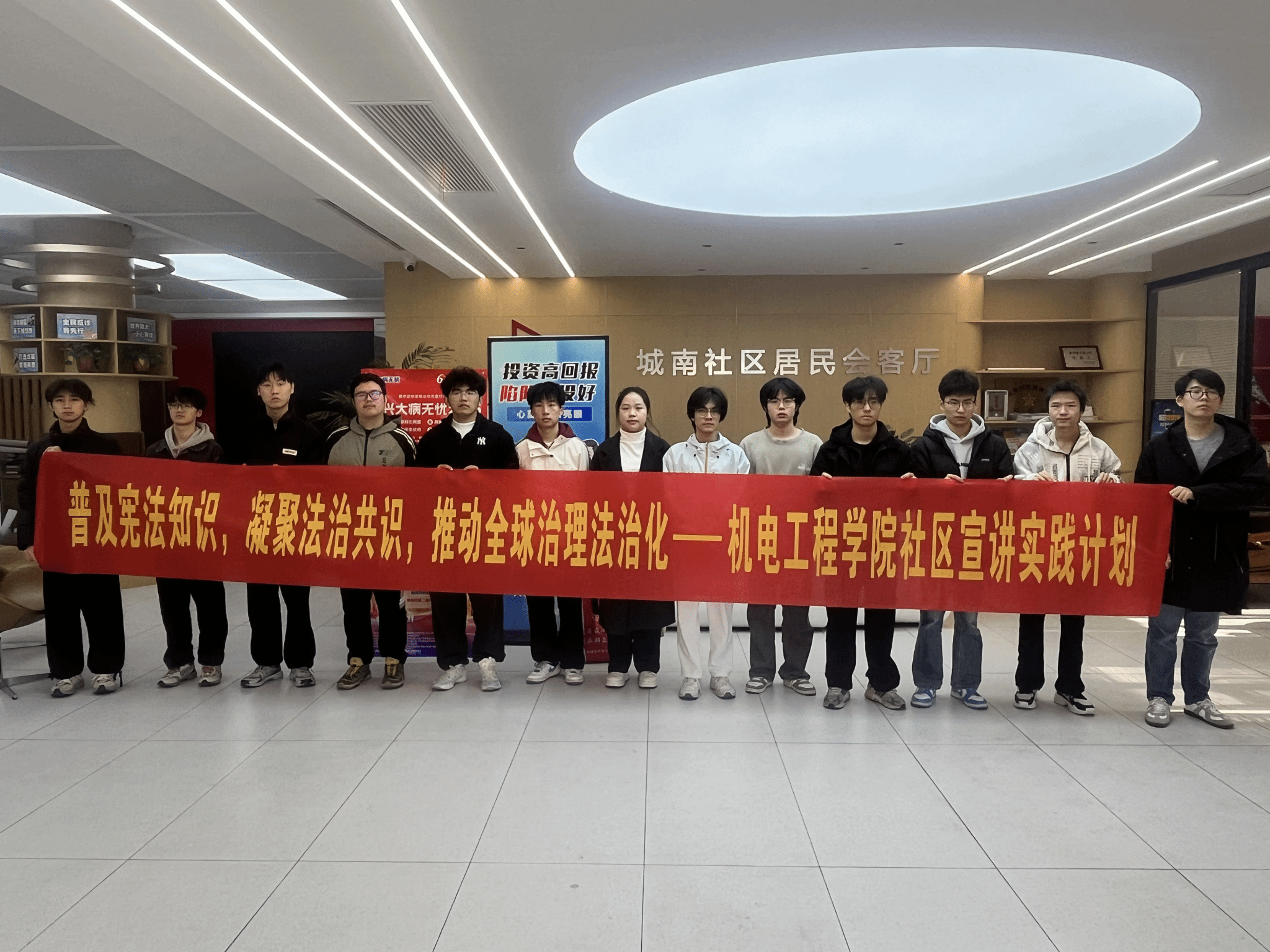 在国家宪法日来临之际,为践行法治精神、履行高校社会责任,嘉兴南湖学院机电工程学院组织青年志愿者于12月3日走进周边社区,开展以“普及宪法知识,凝聚法治共识,推动全球治理法治化”为主题的宣讲实践活动,将宪法知识送到群众身边。