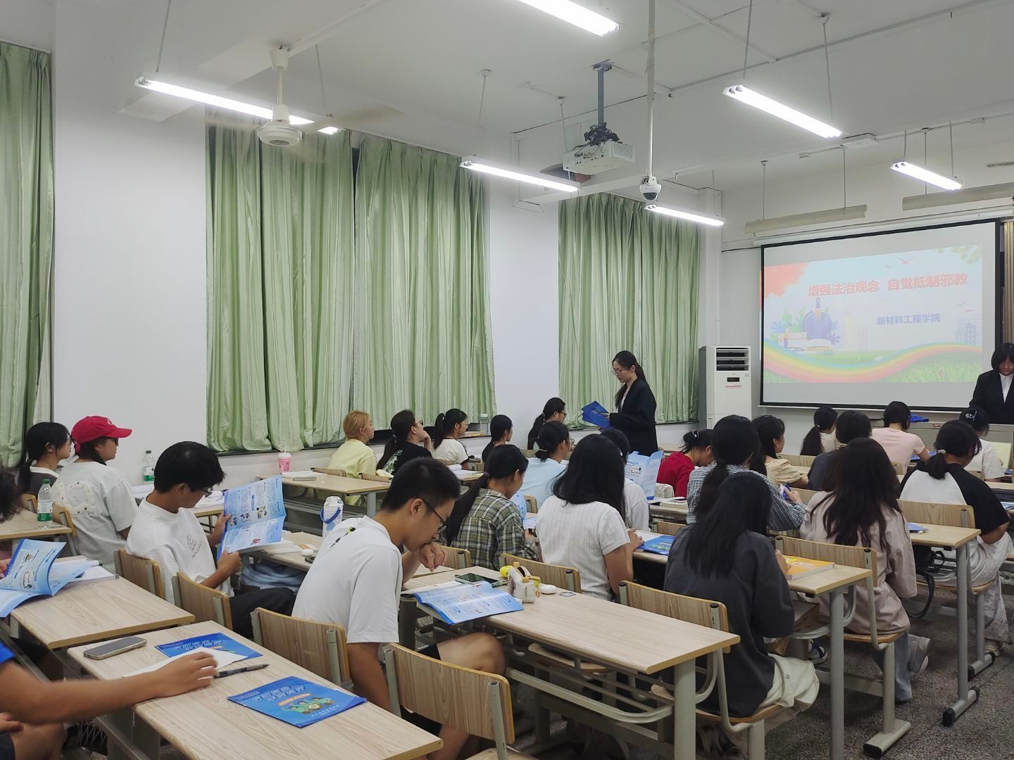 为增强新生识别、抵制邪教侵蚀的意识和能力,营造崇尚科学、反对邪教的校园氛围,2025年9月24、25日,新材料工程学院面向2025级全体新生举办了反邪教警示教育专题宣讲会,并向每位新生发放了《大学生反邪教知识读本》和宣传册,该读本内容详实、通俗易懂,系统介绍了相关法律法规、防范知识和应对策略,为新生提供了实用的学习资料和行动指南。