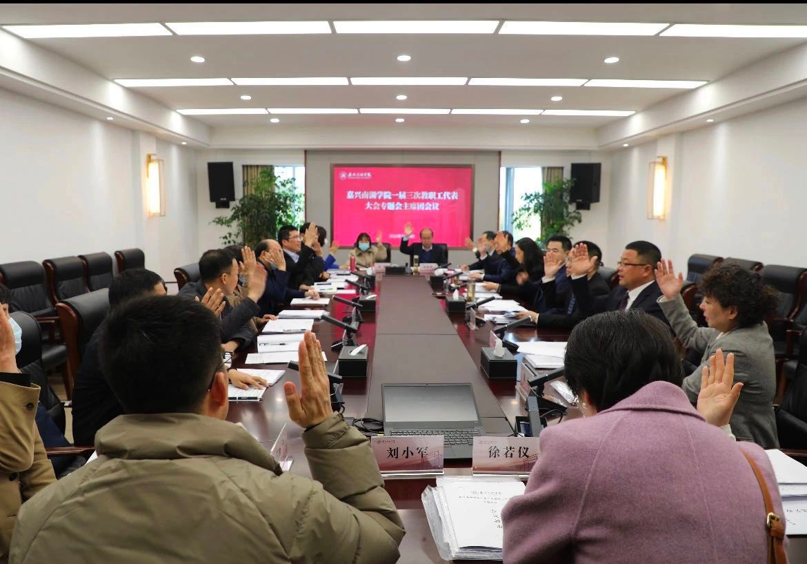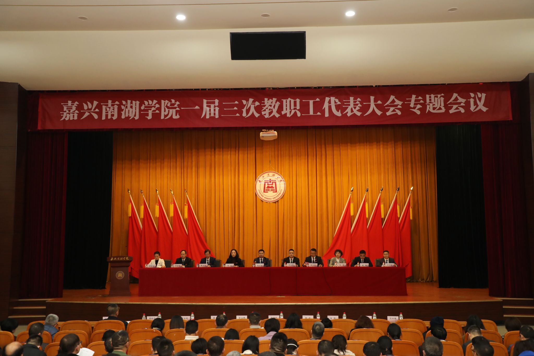 3月16日下午,嘉兴南湖学院一届三次教职工代表大会专题会议在校第二报告厅举行。校领导倪沪平、贾文胜、柯羽、胡文蔚、蒋文波、朱蓉、李泉明、赵渊、蒋娟芬、庄应强出席会议。