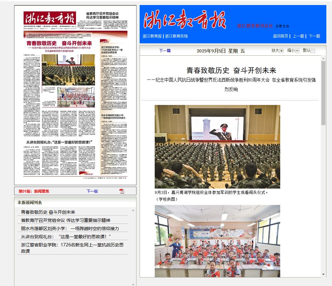 浙江教育报:嘉兴南湖学院组织全体参加军训的学生观看阅兵仪式