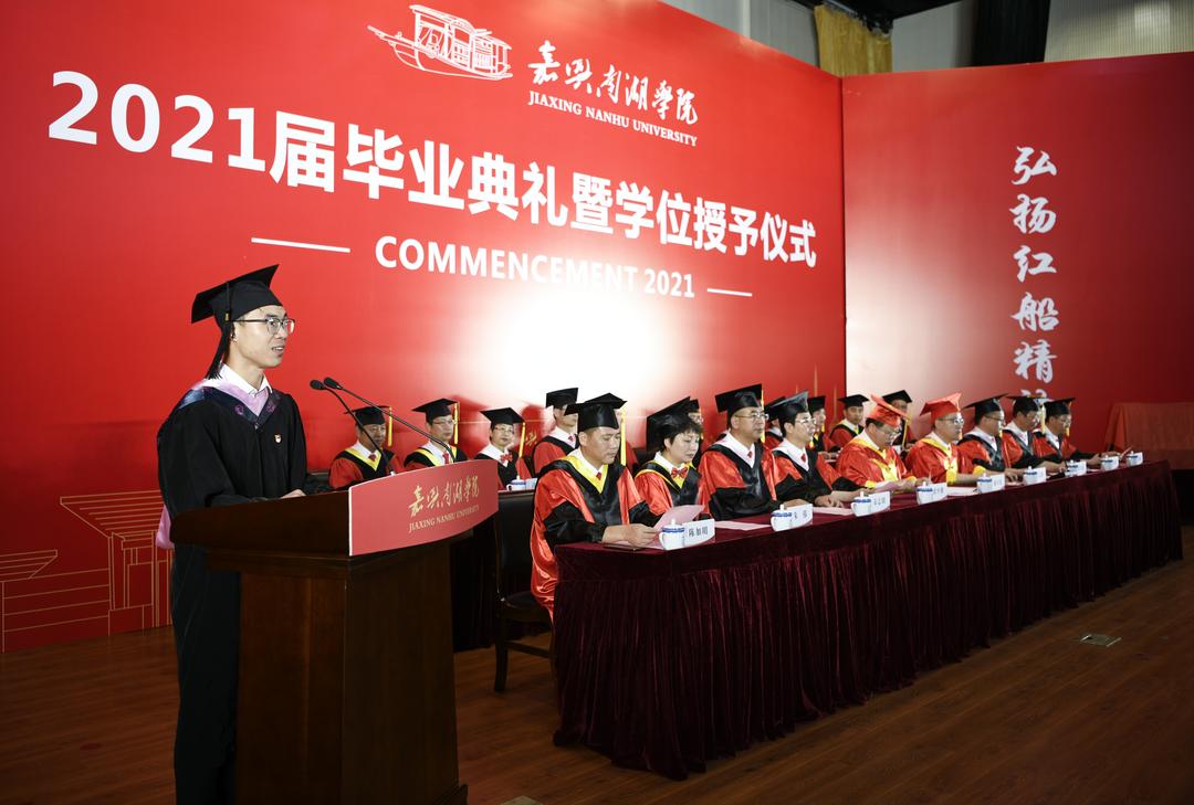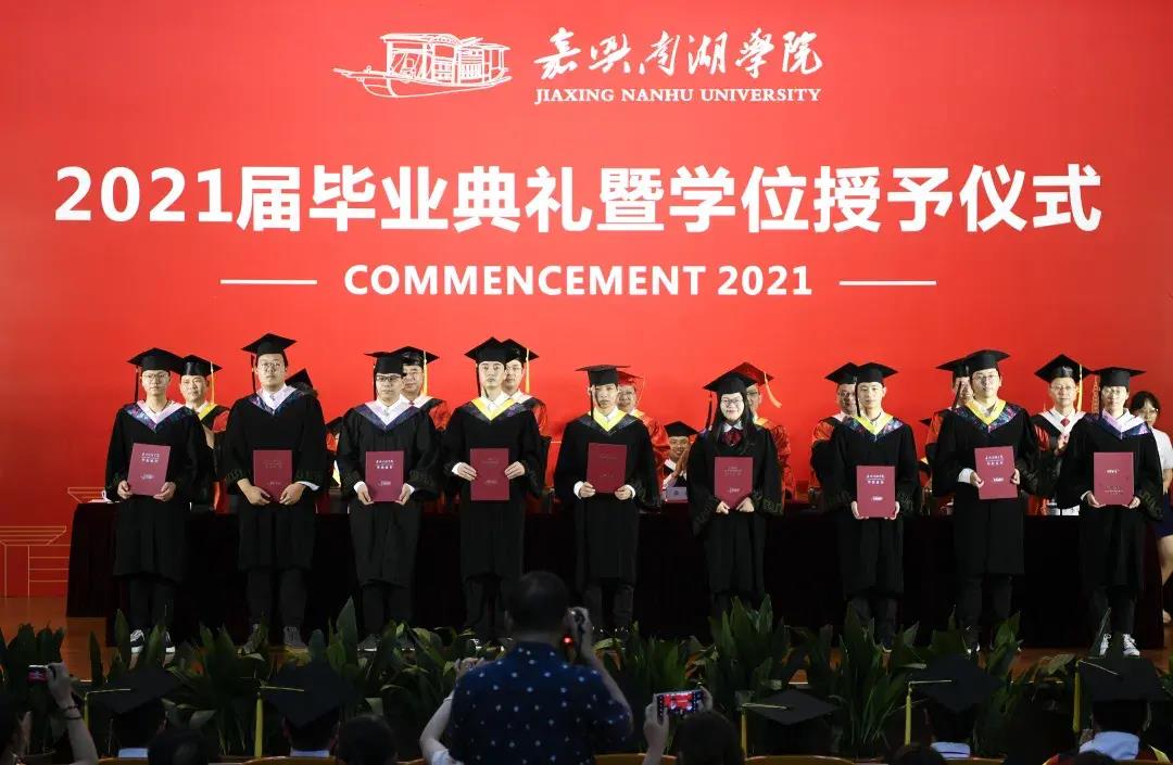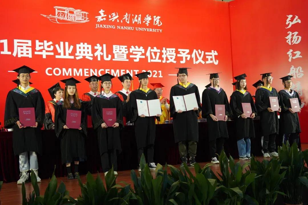 副校长陈加明宣读了嘉兴南湖学院2021届省级优秀毕业生、2021届校级优秀毕业生、考取研究生毕业生等表彰文件。全体校领导为毕业生代表颁发荣誉证书、毕业证书。